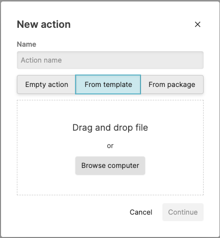 From template based on an existing action template. Use an existing template or upload a template that you have previously exported, then click :