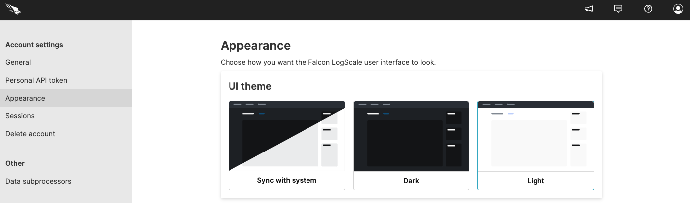This section allows you to choose the way LogScale appears in the UI, in the web browser.