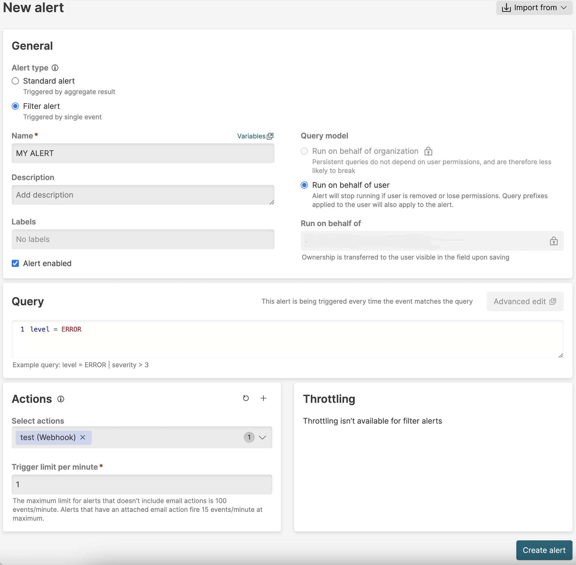 Creating an Alert from a Query