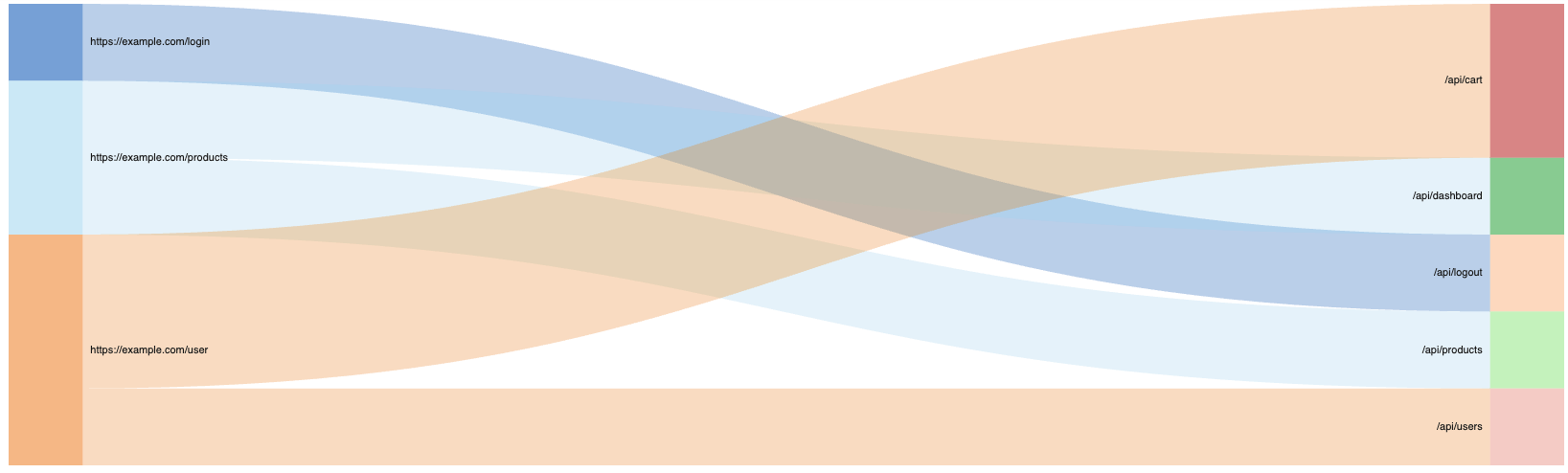 Produces sankey compatible data for a webserver log showing wich URLs matches the HTTP methods. It shows how traffic is distributed across different endpoints.