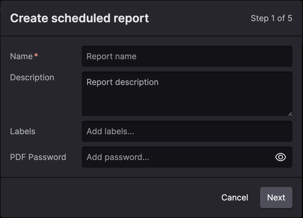 Additionally, the generated PDF files can secured so that the file requires a password before the created PDF report can be opened. To configure a password for the PDF, the password can be set it during the configuration of each report.