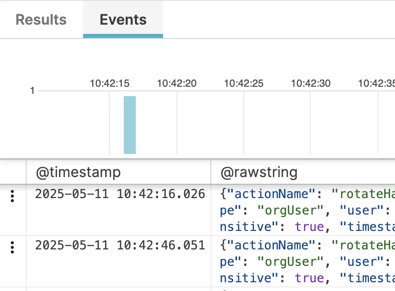 For queries without a prefix, the Events tab includes the raw event data after matches and filtering, but before aggregation.