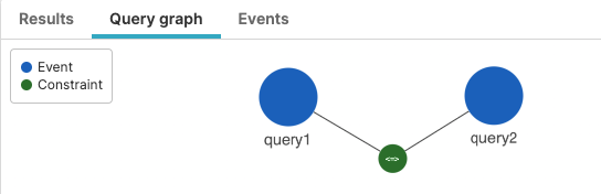 correlate()function is used in the source query, to provide a graphical representation of two correlated events. The graph helps users author complex queries usingcorrelate(), as it displays the structure of the query including correlation query nodes and links that represent the relationship between event fields. For more information, seecorrelate().