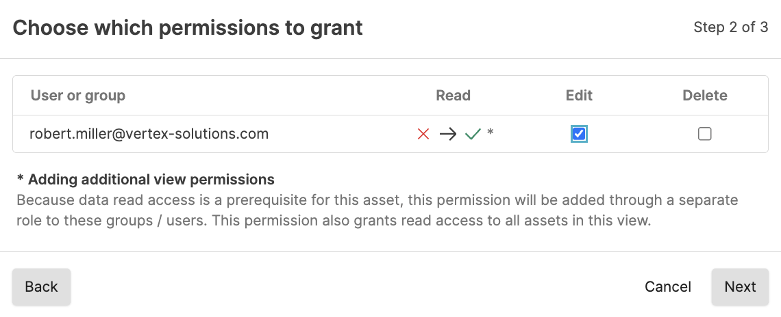 permissions that they have to the asset with users who already