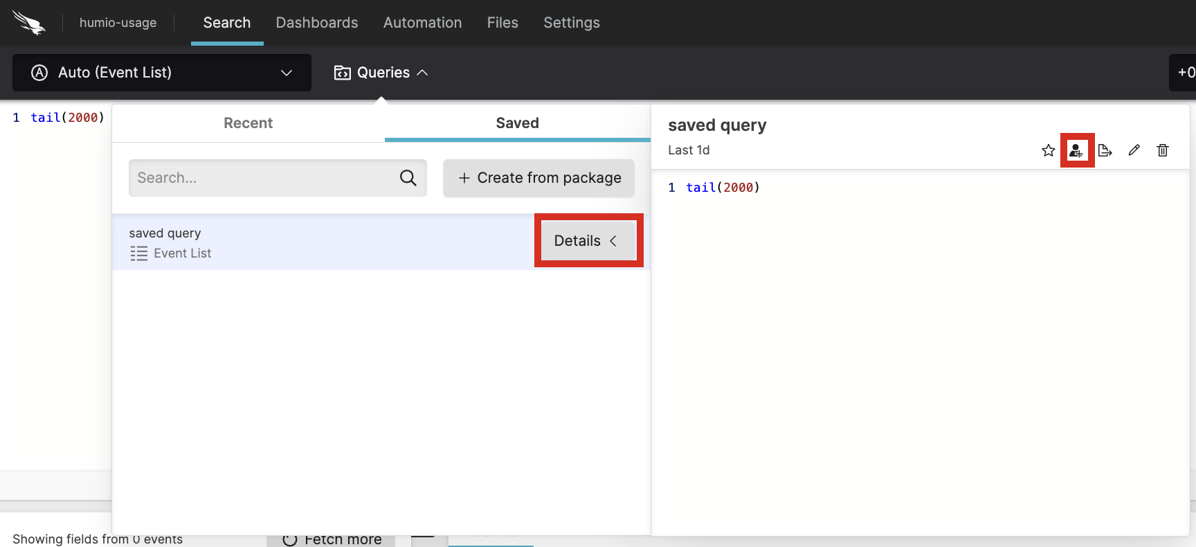 Click Share saved query.