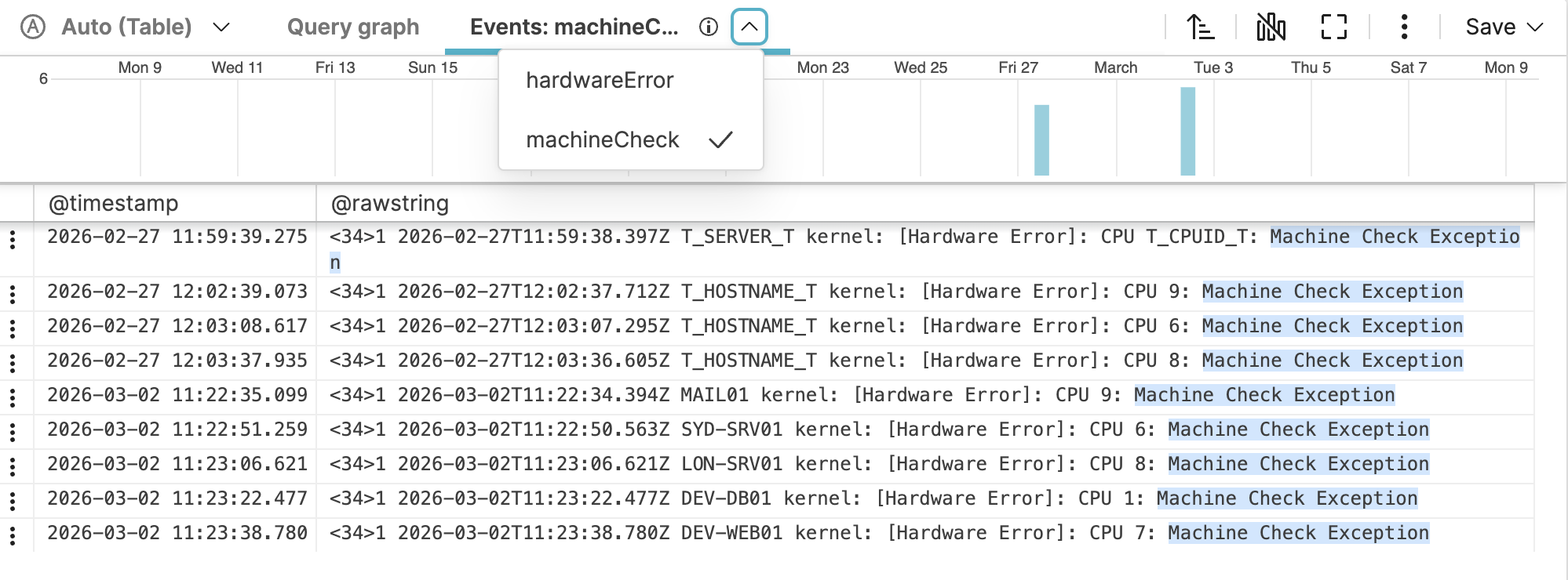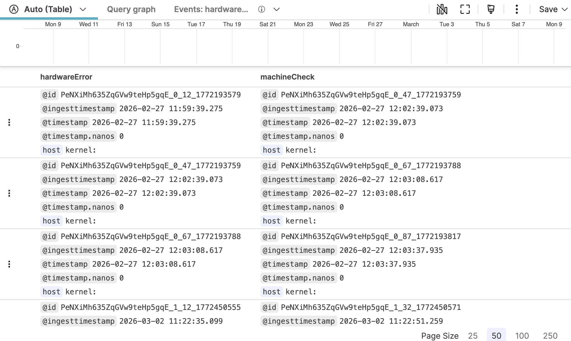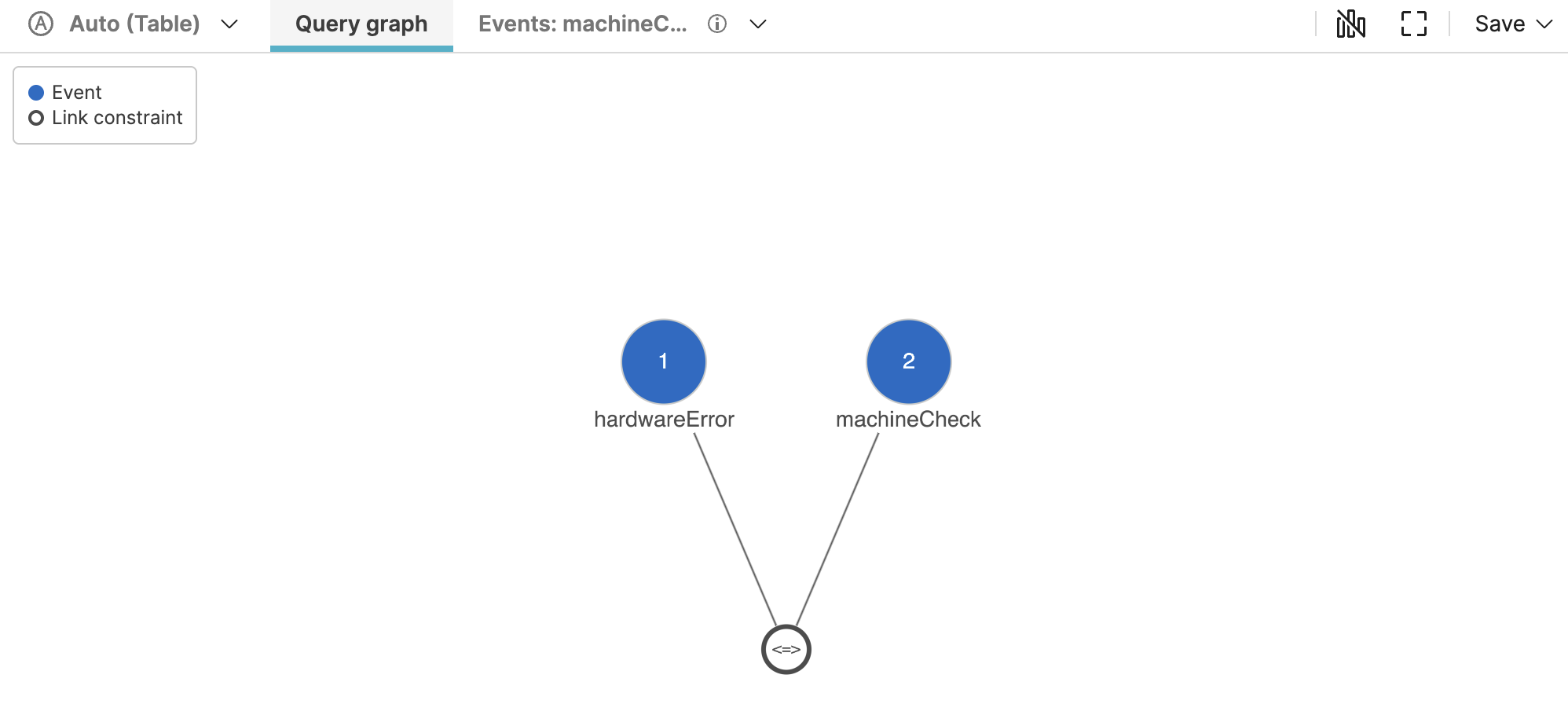 correlate()function in this query has two named queries,machineCheckandhardwareErrorwhich each have a tab of matching results: