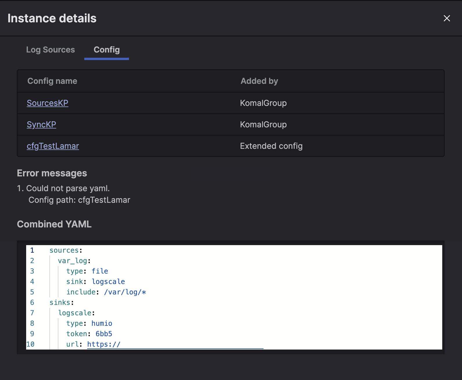 • Error messages— A list of error messages related to the configuration YAML, like duplicated sections.