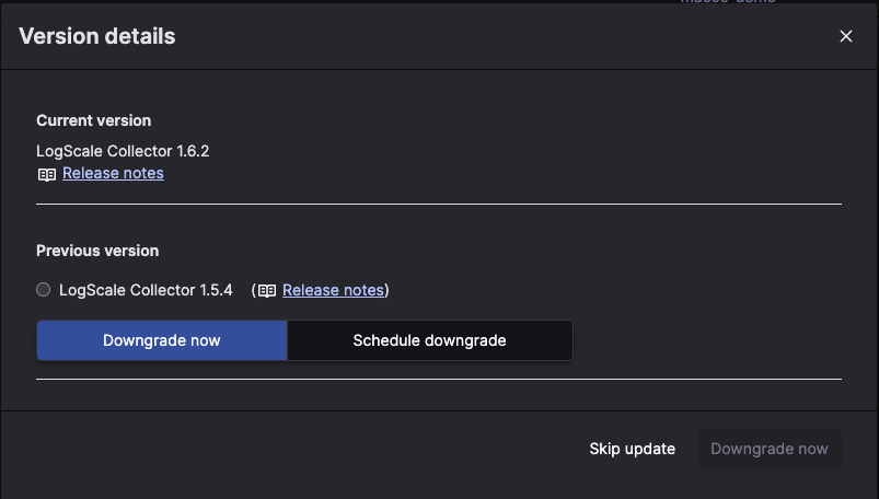 You can downgrade the version of a specific instance of a Log Collector.