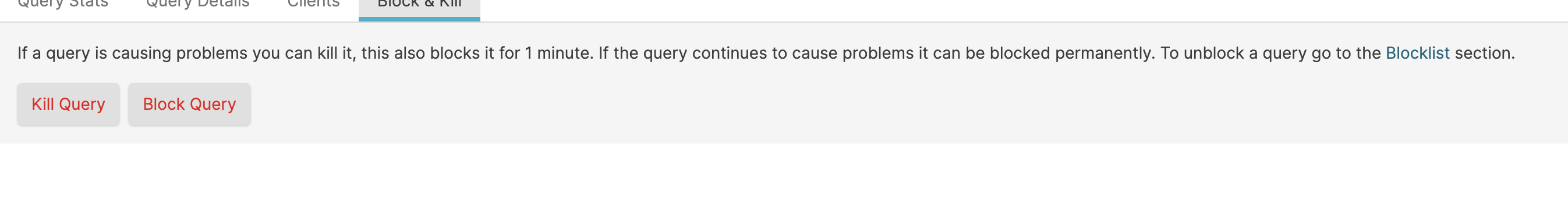Figure 29. Organization Query Monitor Block and Kill Panel