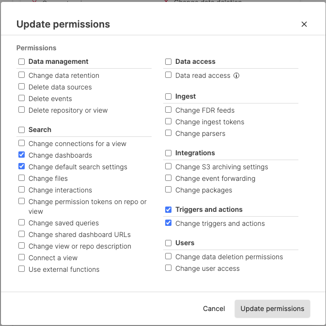Adjust the permissions; click Update permissions to save the updated permissions.