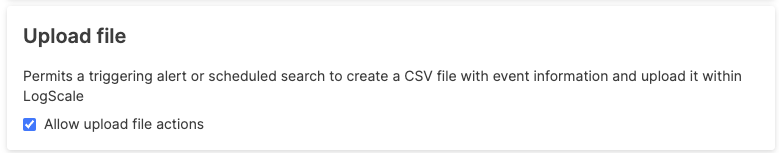 Upload file enables or disables the Upload file action. If disabled, the action will not appear in the list of available actions.