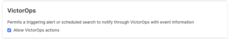 The VictorOps Action Security Policy enables or disables actions. If disabled, VictorOps action will not appear as an option in the list of available actions.