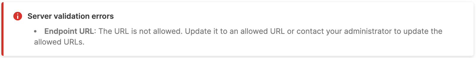 If you try to create a webhook action that is not compatible with the allowlist, a message will be displayed: