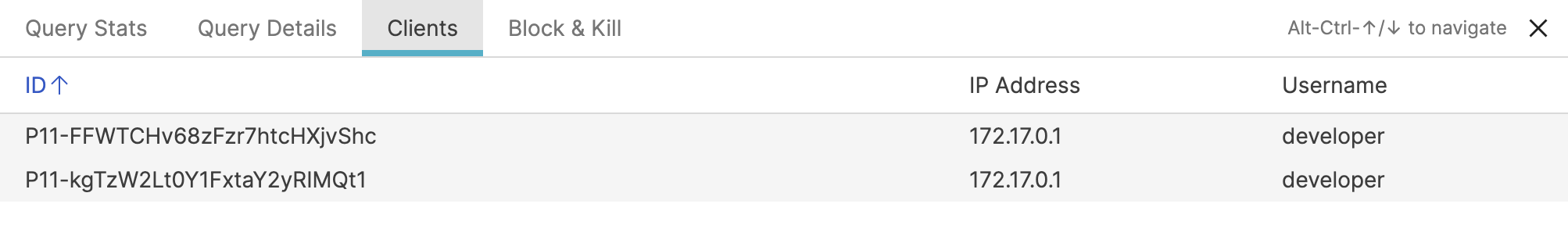 Figure 9. Query Monitor Clients Panel