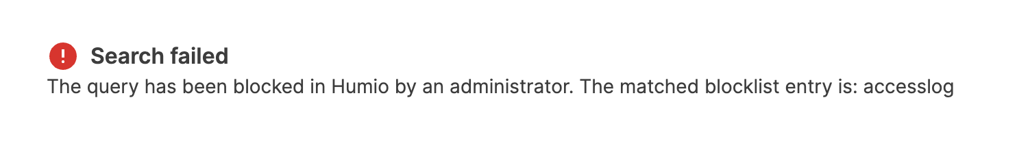The query has been blocked in LogScale by an administrator.