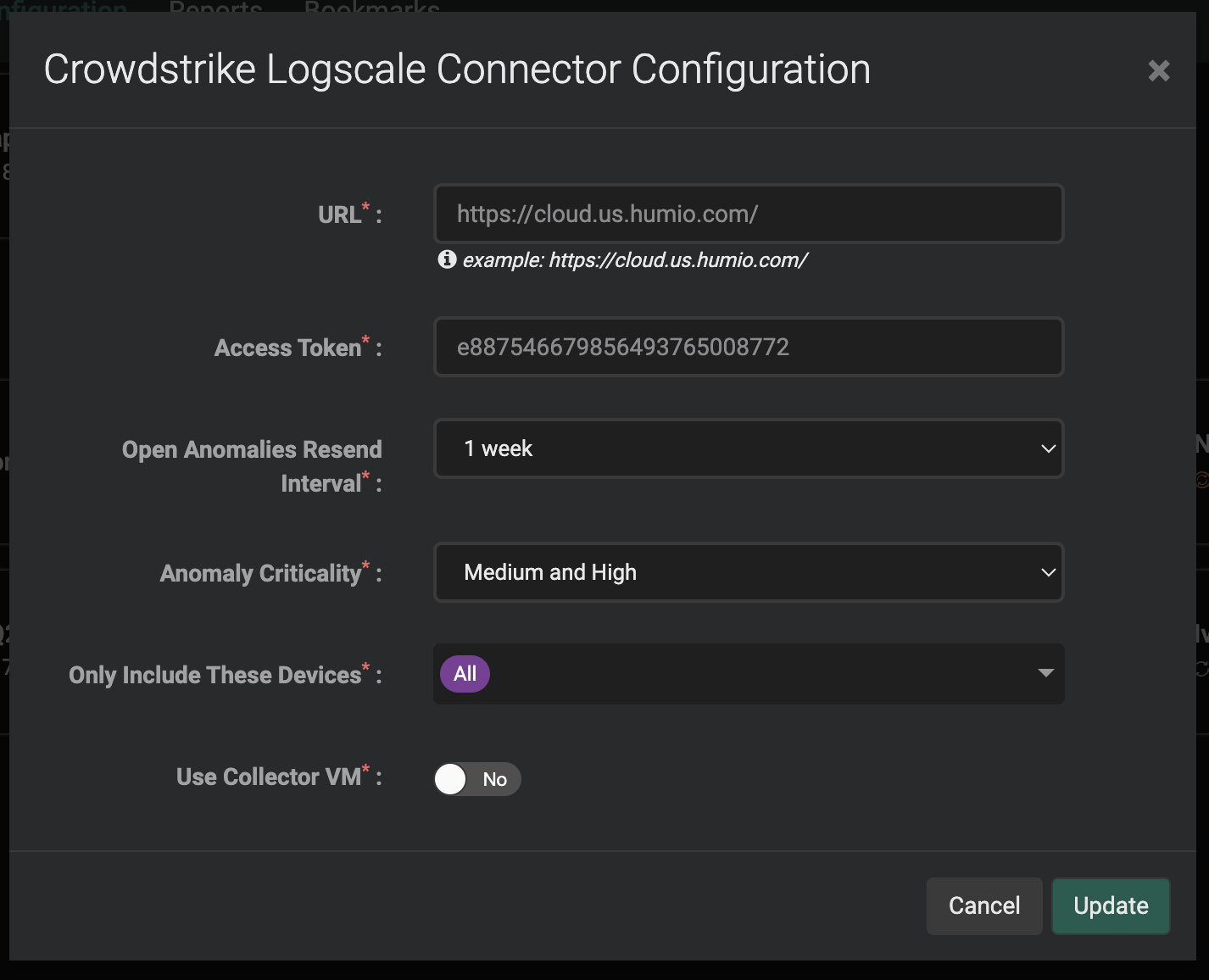 Go to the Asimily Console and go to → and paste the ingest token into Access Token and the LogScale URL into URL and save.