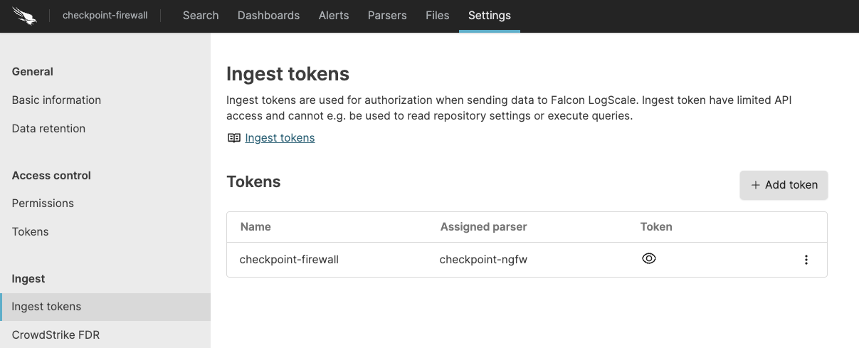 In the right panel, click to create a new token. Give the token an appropriate name (the name of the server the token is ingesting logs for), and either leave the parser unassigned (instead of setting the parser in the log collector configuration later on), or assign the