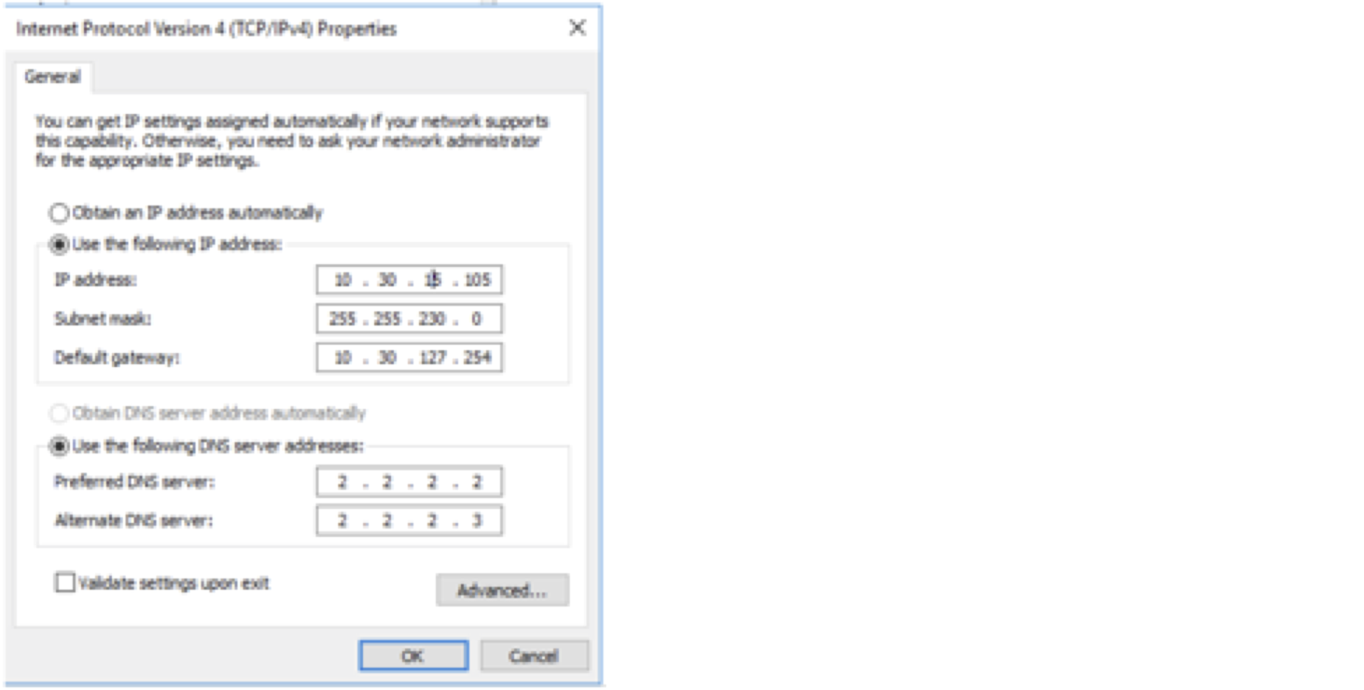 Select Internet Protocol Version 4 (TCP/IPv4), and then select properties. Use your syslog server's IP address as the destination in the first box (10.30.15.105 in the example below).