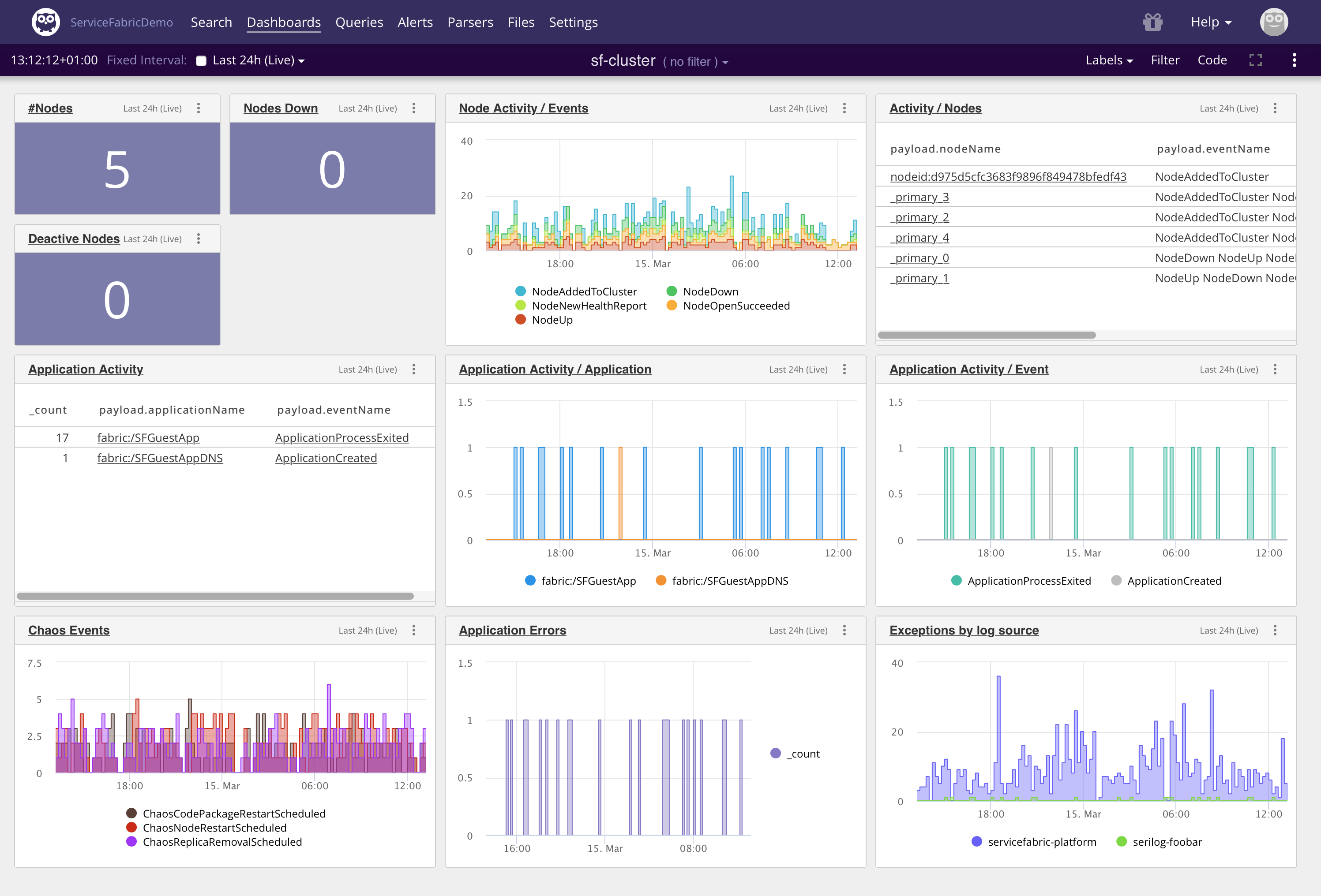 Combining the knowledge we have gained from digging into our logs, we can build a Service Fabric cluster dashboard: