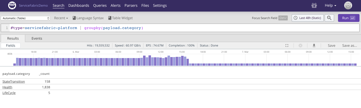 Parsing Service Fabric Platform Events with LogScale