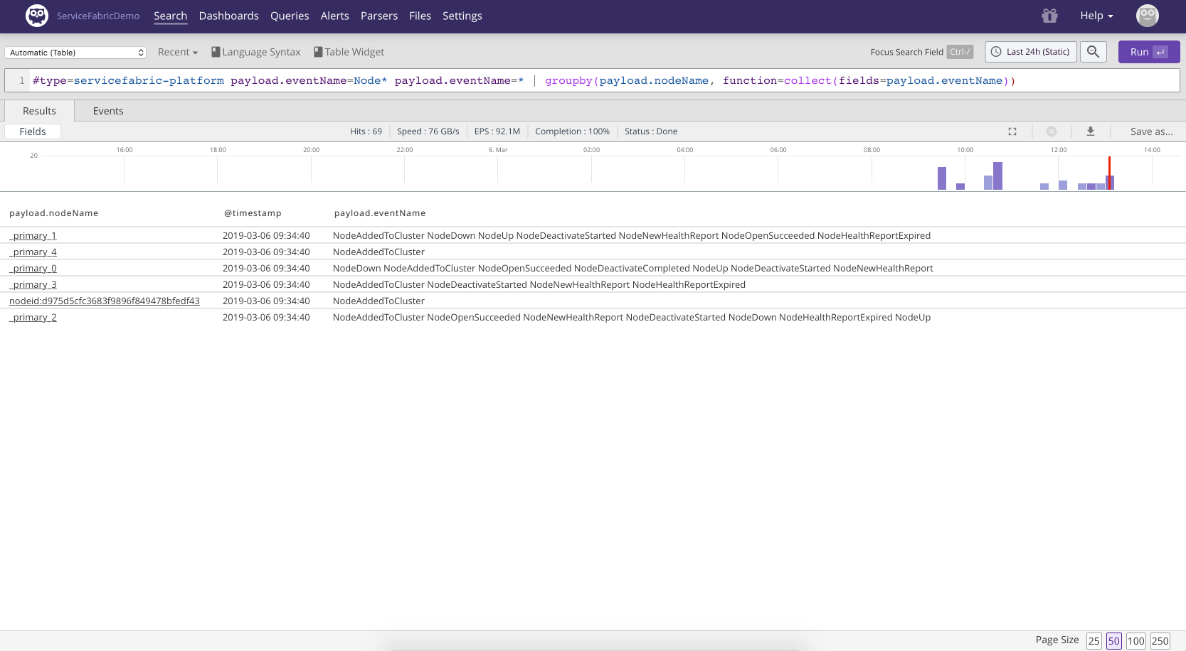 | groupby(payload.nodeName, function=collect(fields=payload.eventName))![]() |