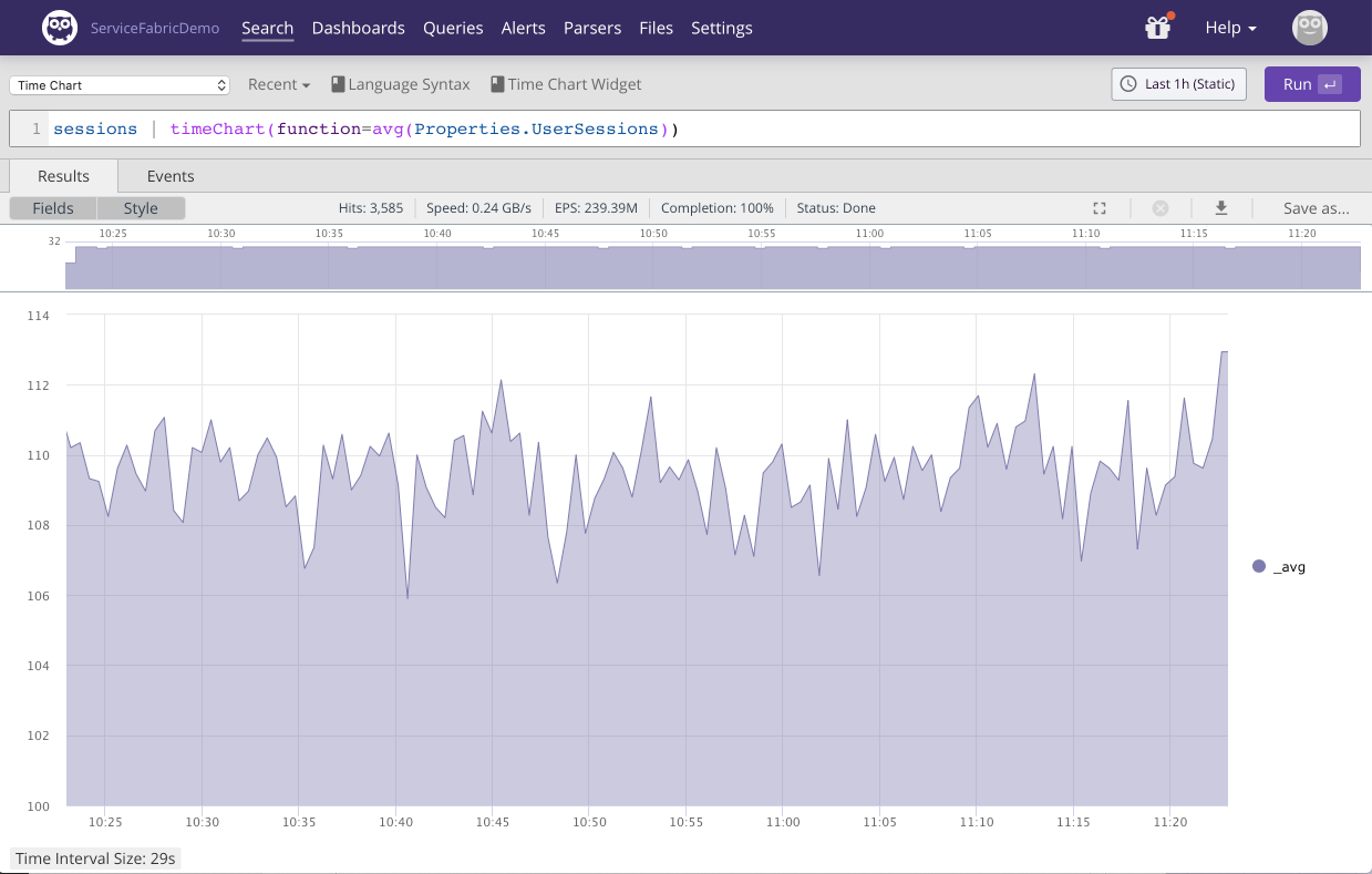 Let's say we want to plot the average number of user sessions the last hour: