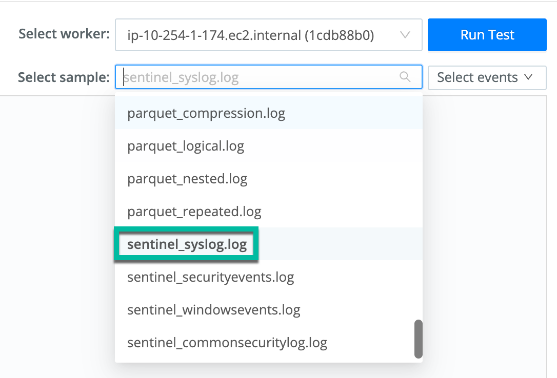 • In the Select sample drop-down, scroll down through the list and select sentinel_syslog