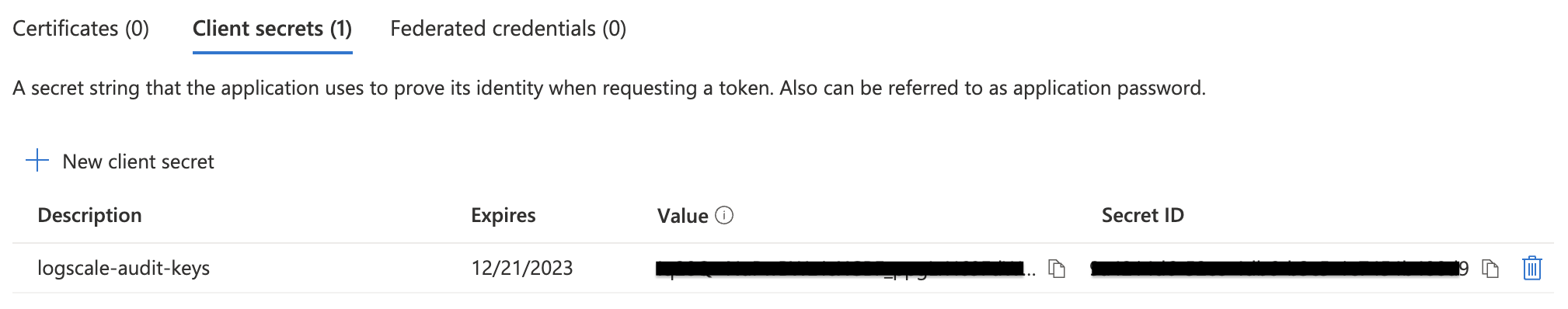 2. Click New client secret