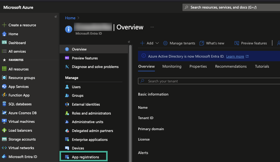 3. Select App registrations