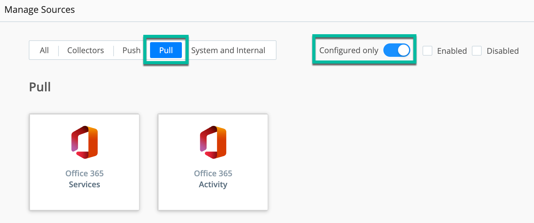 After filtering on 365 for sources, click on the Office 365 Services tile