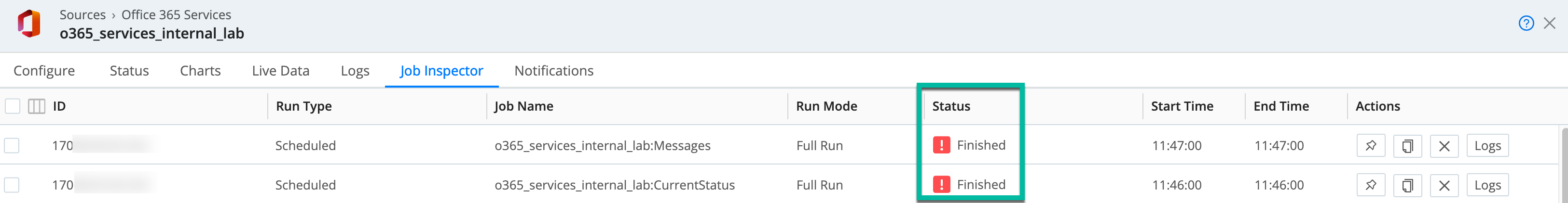 3. Repeat process for the other O365 source