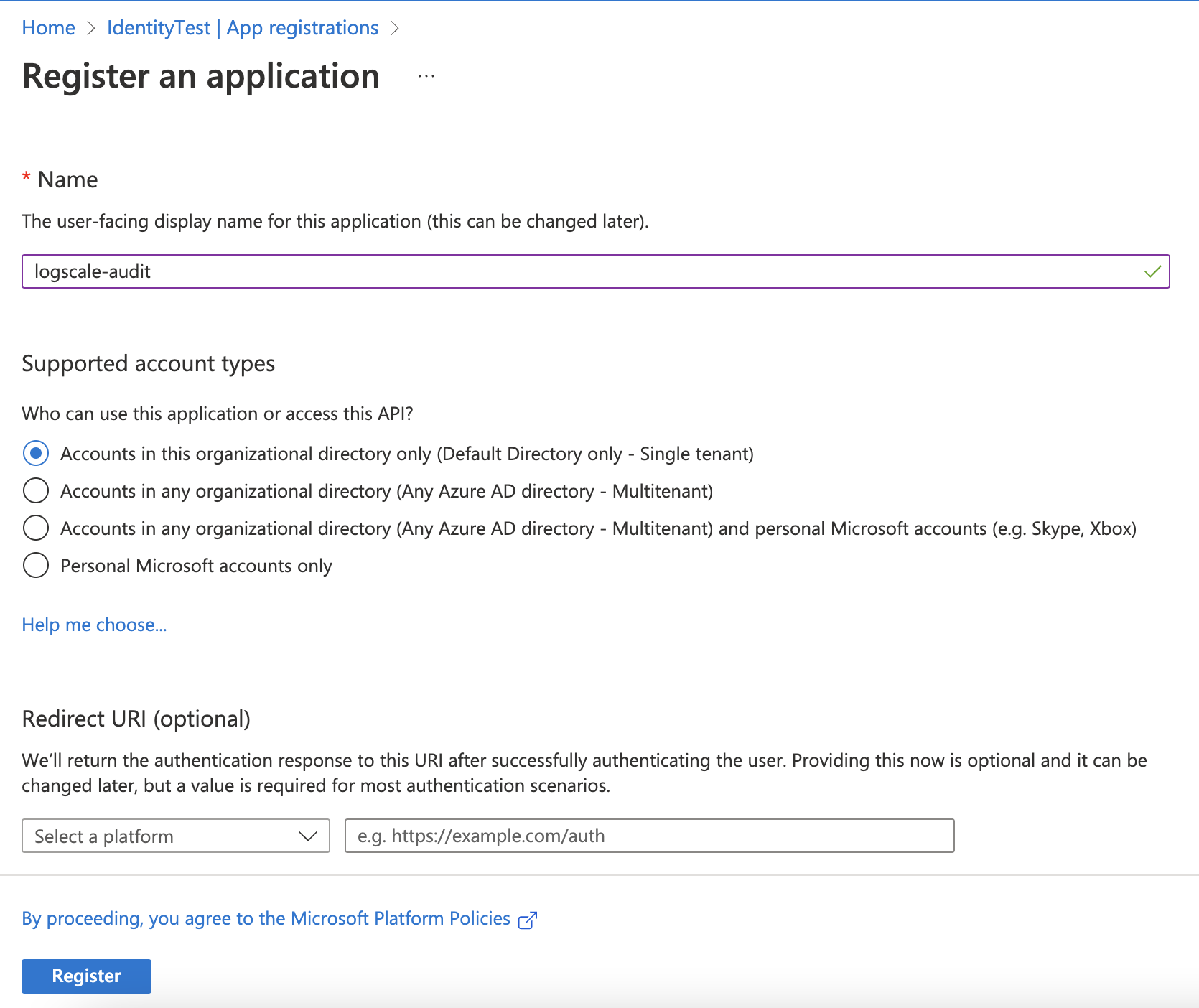 2. Select Microsoft Entra ID on the left dropdown