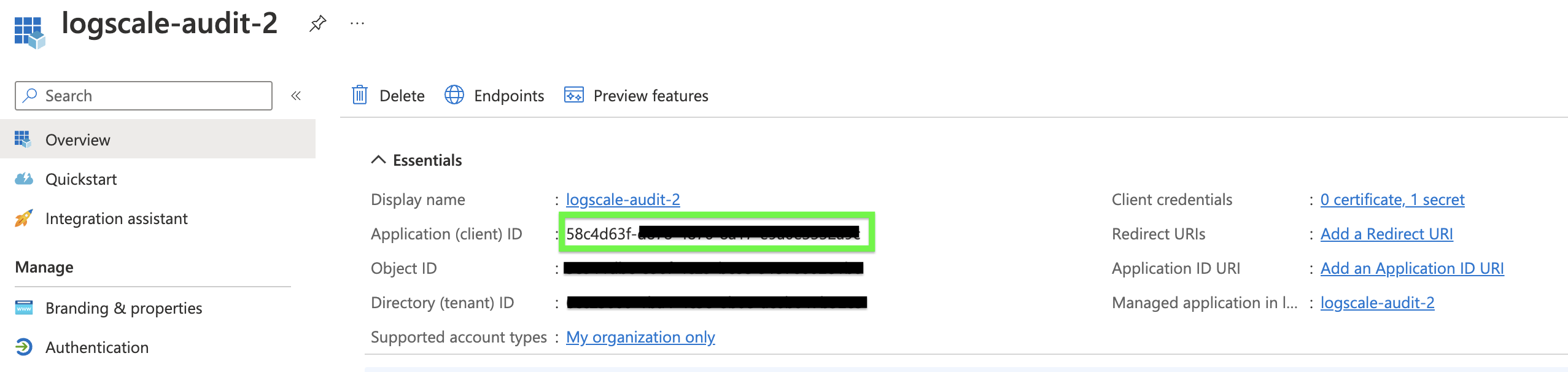 7. Navigate to overview and copy the Application (client) ID: