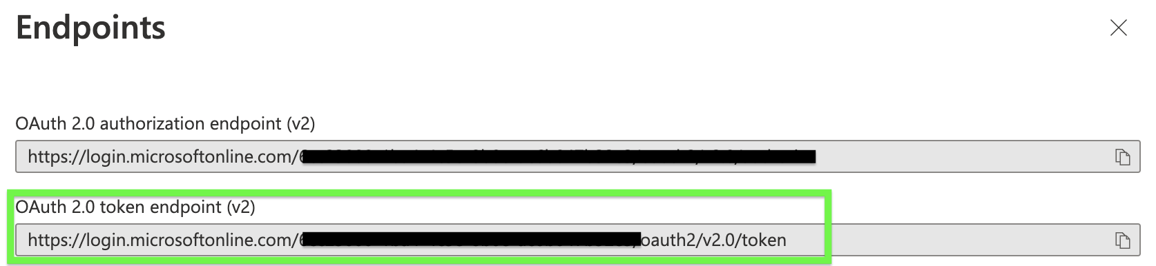 8. Select Endpoints and copy the OAuth 2.0 token: