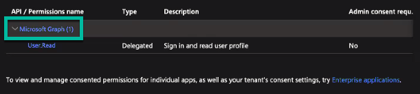 1. Once it is created, navigate to API permissions